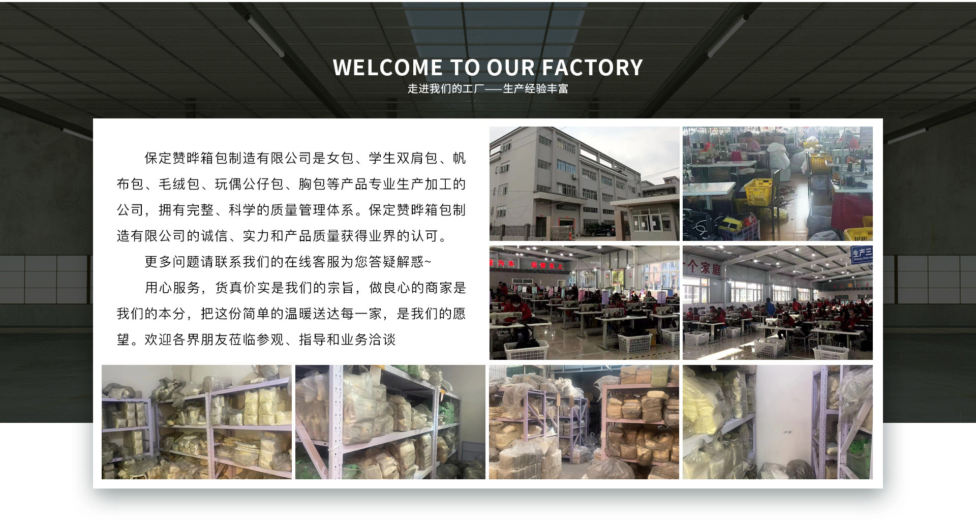 Baoding Baigou New City Jinfu Luggage Factory Baigou New Town, Gaobeidian City, Baoding, Hebei | Tier 3 | 5+ | 0.64% | 390 | Good QualityLow ReturnsGood DisputeGood Service | Women's Crossbody BagWomen's Shoulder BagCasual Backpack | Quality 4.0 Returns 4.3 Logistics 3.7 Consult 4.0 Dispute 5.0 Overall 4.5 | View contact |