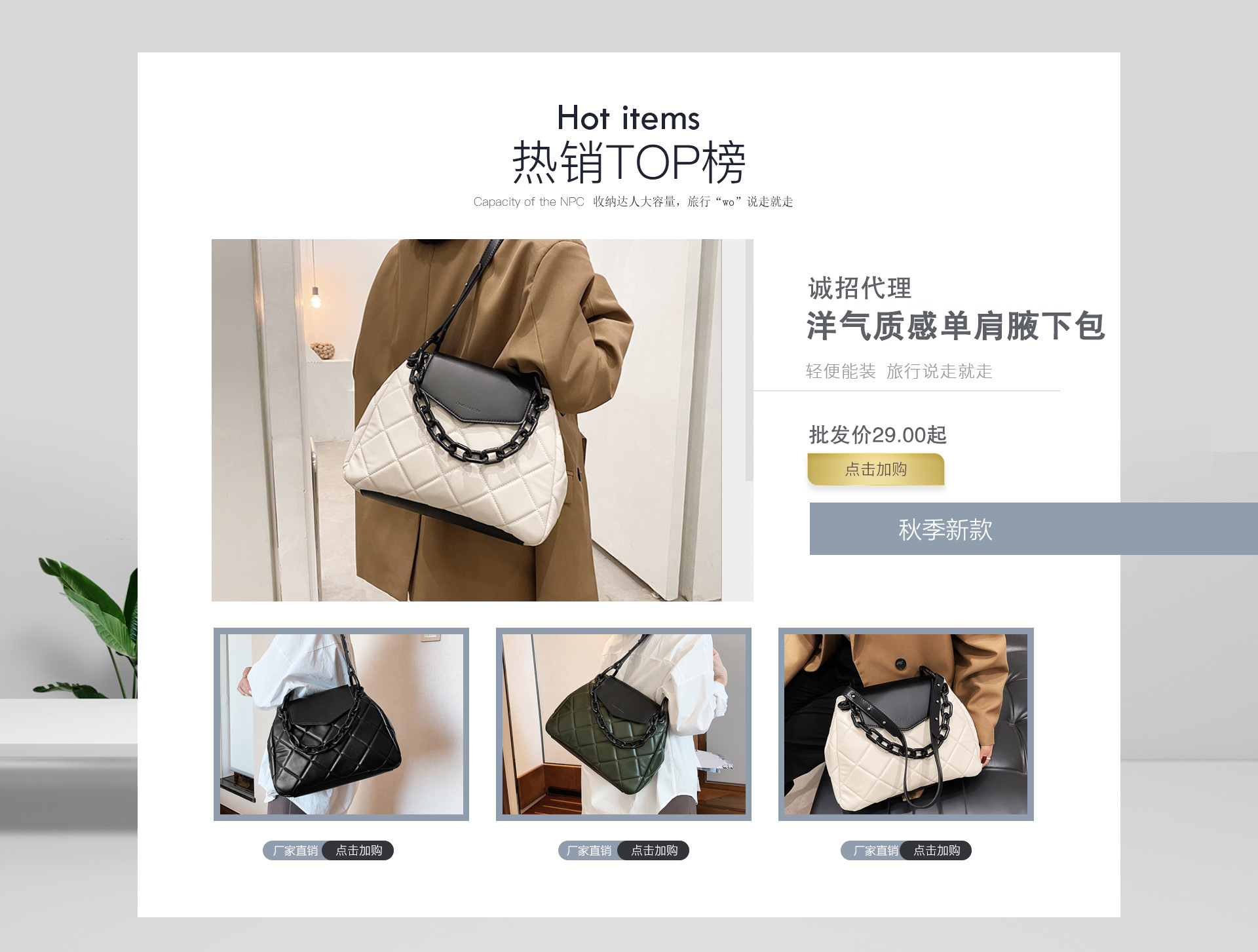 Baoding Momei Luggage Manufacturing Co., Ltd. No. 15 Yinxing Street, Gaobeidian City, Baoding, Hebei | — | Tier 1 | 6+ | 0.97% | 31.8k | Good QualityLow ReturnsGood DisputeGood Service | Women's HandbagTote BagWomen's Crossbody Bag | Quality 4.0 Returns 4.0 Logistics 3.9 Consult 4.5 Dispute 4.0 Overall 5.0 | View contact |